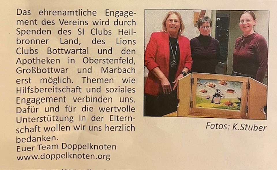 Wir engagieren uns gemeinsam mit Doppelknoten e.V. Beilstein für Bildung und Erziehung.